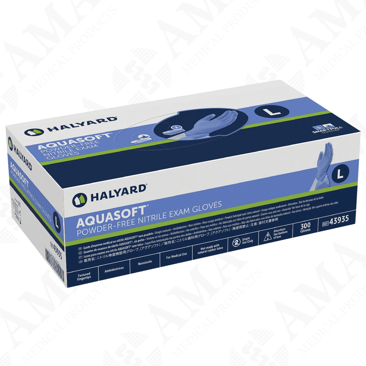 AQUASOFT Gloves are comprised of a unique nitrile formulation that provides users with both comfort and tactile sensitivity. .  AQUASOFT* Gloves are thinner than typical nitrile gloves. That means they take up less storage space – each inner box contains 300 gloves – and they generate less waste.