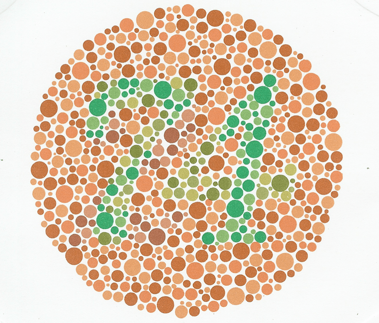 Books consisting of 14, 24 or 38 coloured plates that contain dots in random shapes and various colours to form a specific shape or number that is clearly visible to those with normal colour vision.