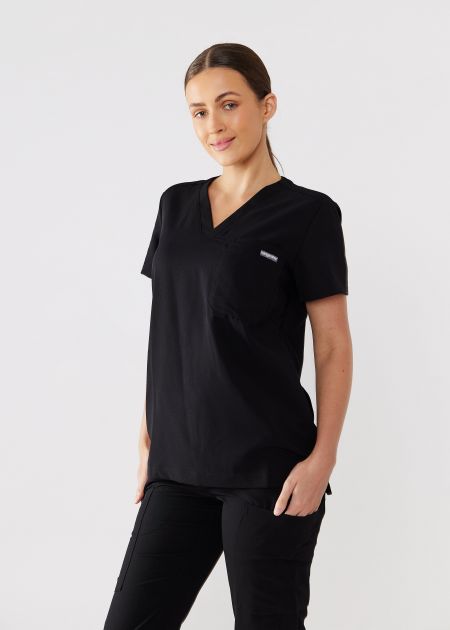 Elevate your workwear with the Yarra Top—crafted for professionals who demand both style and functionality. Its sleek, semi-fitted silhouette moves with you, ensuring all-day comfort without sacrificing sophistication. A flattering V-neck with overlap band, two-layer chest patch pocket, and subtle darting details create a polished, contemporary look. Side splits add flexibility, making it easy to layer with an under-scrub.