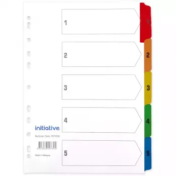 INITIATIVE INDEX DIVIDERS A4 1-5 TAB WHITE WITH COLOURED TABS