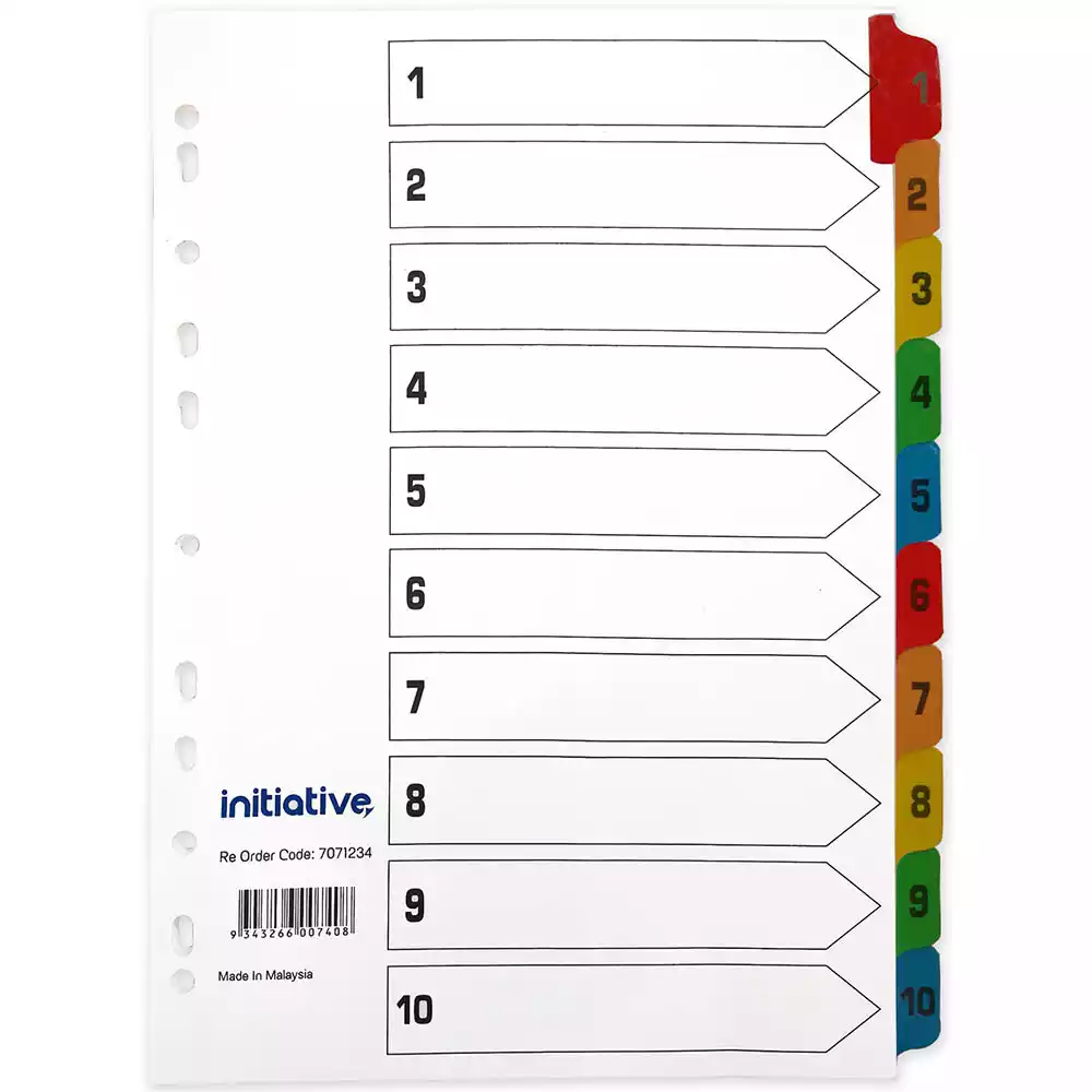 INITIATIVE INDEX DIVIDERS A4 1-10 TAB WHITE WITH MYLAR TABS