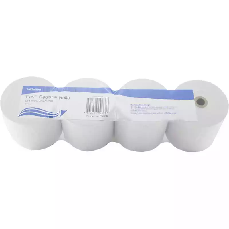 Initiative cash register rolls produce crisp receipts using our low lint paper rolls | Suits all 76mm wide impact printers | Made in Australia | Lint free | Bond Paper | Single Ply