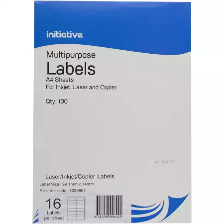 INITIATIVE MULTI-PURPOSE LABELS 16UP 99.1 X 34MM PACK 100