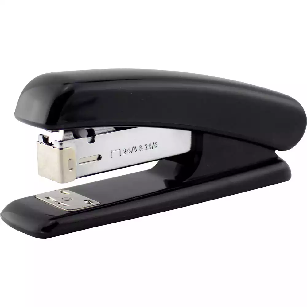 Strong and sturdy half strip stapler perfect for everyday office stapling | Ergonomic rounded plastic handle increases comfort when stapling | Lightweight and easily portable | Top loading stapler that operates smoothly with a simple touch | Metal interior mechanism and anti-slip base ensures durability and provides consistent, hassle free stapling | Staples up to 20 sheets of 80gsm paper | Half strip, holds 120 staples | Uses 24/6 and 26/6 size staples