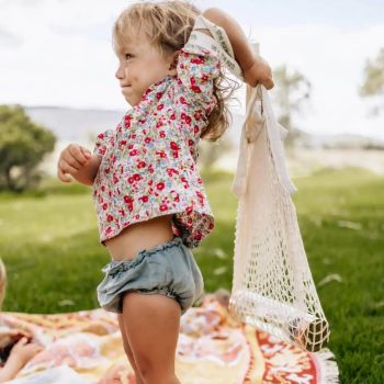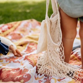 Reusable Shopping Net Bag with Pocket - Cotton Mesh