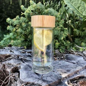 Double Walled Bamboo Glass Bottle - 300 ml