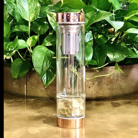Rose Gold Crystal Bottle with Gemstone Base and Tea Infuser