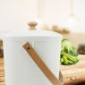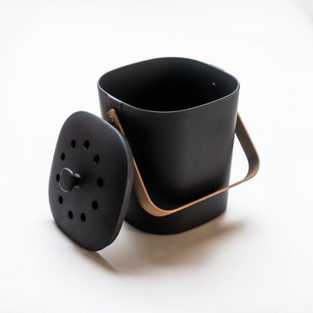 Stores vegetable peelings, egg shells, coffee grinds and more until ready for transfer to outdoor composter