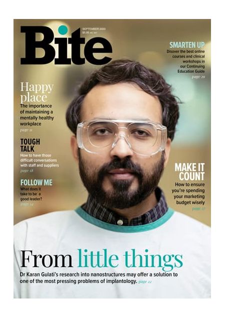 Bite magazine makes dental practise better. It’s about the people and personalities leading the world of oral health care. It’s about making dentistry work for you, your colleagues and your patients. It covers the latest and greatest gear, ideas, trends and real-life success stories that you can learn from and apply in your day-to-day practise.