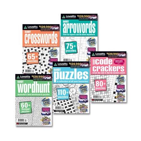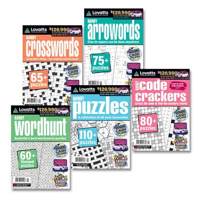 Handy Crosswords, Handy Code Cracker, Handy Wordhunt, Handy Arrowords and Handy Puzzles are each published every two months. That’s 30 fantastic magazines per year in this super-value bundle. The fun never ends with so many crosswords, brainteasers, wordsearch, code crackers and more!
