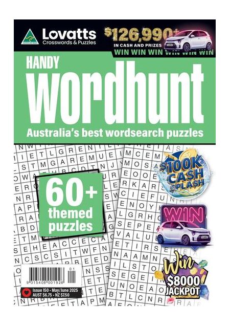 Handy Wordhunt is the ultimate wordsearch magazine in a handy size. The puzzles have all been hand crafted around interesting themes. Some wordsearches have the added twist of a hidden answer found after you cross off all the words. Others have the words twisting through pathways in the grid. Wordhunt is a great magazine for all ages and all levels of skill.