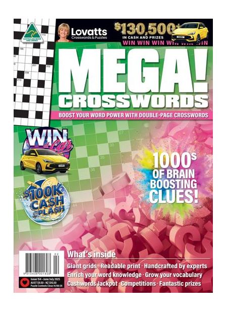 MEGA! Crosswords® is a favourite with those who love their crosswords straight. With giant crosswords in every issue, there are thousands of clues to delight word enthusiasts. The page layouts are clear and puzzler-friendly and most clues are solvable with your own word knowledge. There are a couple of tougher crosswords for those who like a challenge.