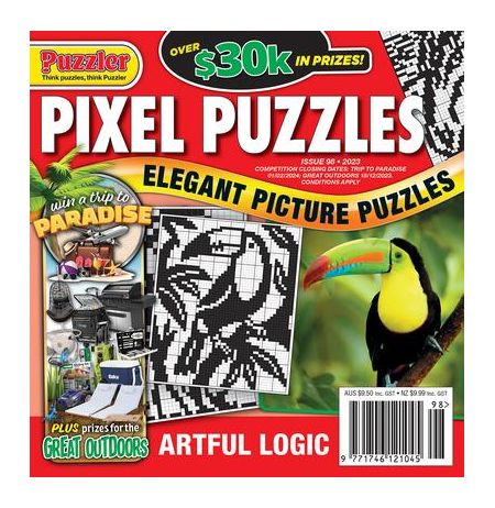 Pixel Puzzles is the magazine where art and logic meet! Pixel puzzles are an absorbing and rewarding challenge for those with methodical minds. You have both the satisfaction of successfully solving a purely logical puzzle, and the pleasure of seeing a pixelated picture form before your eyes as the squares of a grid are filled in. Deducing the location of shaded squares is prompted by the number clues around the grid, hence the puzzle's description as a form of 'painting by numbers'. Not only will each issue get you pixeled with excitement, the prizes you can win in our competitions will defintley keep you wanting more! Please allow up to 6-9 weeks for your first delivery.##
