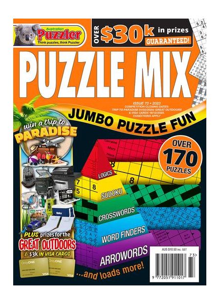 Puzzle Mix is every puzzle fan’s dream come true. Each issue is jam-packed with 128 pages of fabulous puzzles of every variety. From tea-break quickies to complex challenges, there’s a puzzle for every puzzling mood and moment. Try your hand at the challenging Kross Piece, work your way through entertaining Spirals, and test your grey matter figuring out Missing Links. You’ll be spoilt for choice as you work your way through Honeycomb, Kriss Kross, Linkword, Step Ladder, Sudoku and Wordsearch puzzles. And, of course, the classics are all there, too: Battleships, Piecewords, Quick Crosswords and Skeleton puzzles. Whether you have five minutes to spare, or a few hours, Puzzle Mix is the perfect magazine for all puzzlers. Each issue is also packed with wonderful big-prize competitions. Please allow up to 6-9 weeks for your first delivery.##