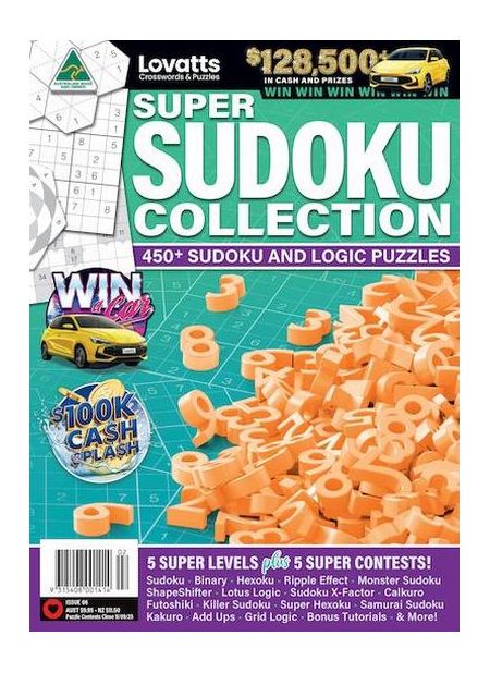 Unleash your logic skills with the Super Sudoku Collection! This bumper volume offers 120 pages of engaging puzzles, including Sudoku, Binary, Ripple Effect, Calkuro, Hexoku, and X-Factor. With 450+ puzzles, a variety of difficulty levels, and easy-to-follow tutorials, there’s something for everyone. Get ready for extra excitement with our super-sized Samurai Sudoku and Super Hexoku puzzles. Plus, with great competitions offering over $124,490 in cash and prizes, you’ll love the brain-boosting excitement this collection brings! Please allow up to 12-21 weeks for your first delivery.##